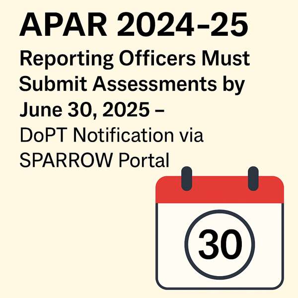 2. The APARs pending with the Officers Reported Upon have already been auto forwarded to the next level i.e. Reporting Officer on 01.06.2025 (at 00:00 Hrs.), as per the stipulated timelines. The next deadline stipulated is 30.06.2025 for the Reporting Officers to make their assessment/entries. The APARs would be AUTO-FORWARDED to the next level on 01.07.2025.