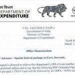 FinMin Order – Grant of Advance – Special festival package to Central Government Employees SOP – UTSAV Card